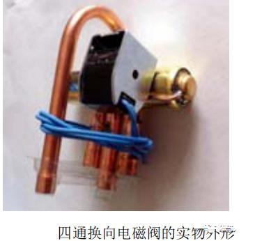 四通换向电磁阀也叫四通电磁阀、四通阀。只有热泵式冷暖空调器制冷系统设置四通换向电磁阀,典型的四通换向电磁阀的实物外形如下图所示。